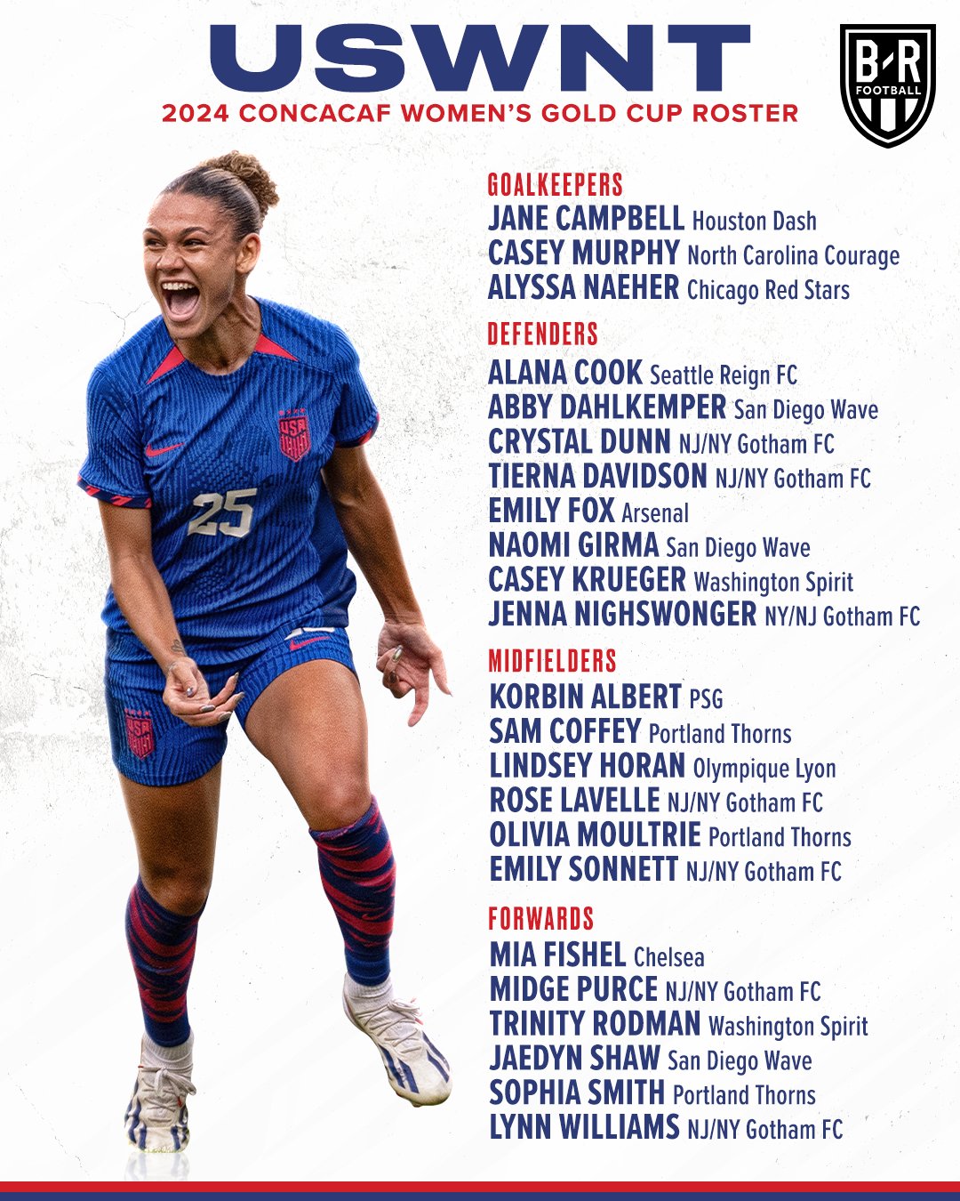 Source : m.facebook.comB/R Football on X: “The USWNT squad to compete in the Concacaf W