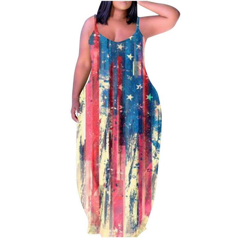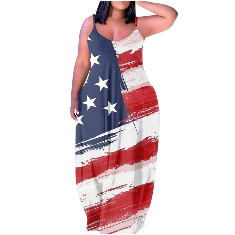 Source : www.amazon.comOdeerbi 4th of July Patriotic Suspender Dress for Women Summer